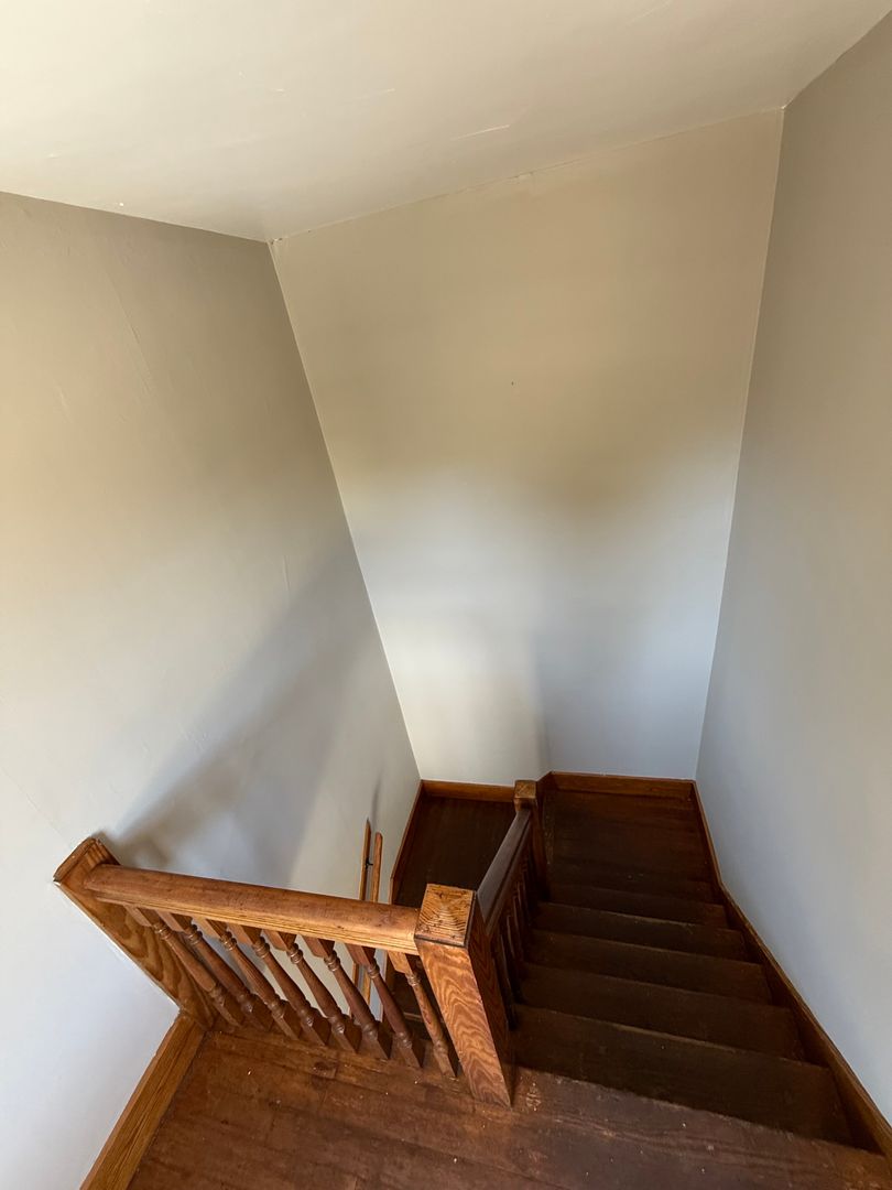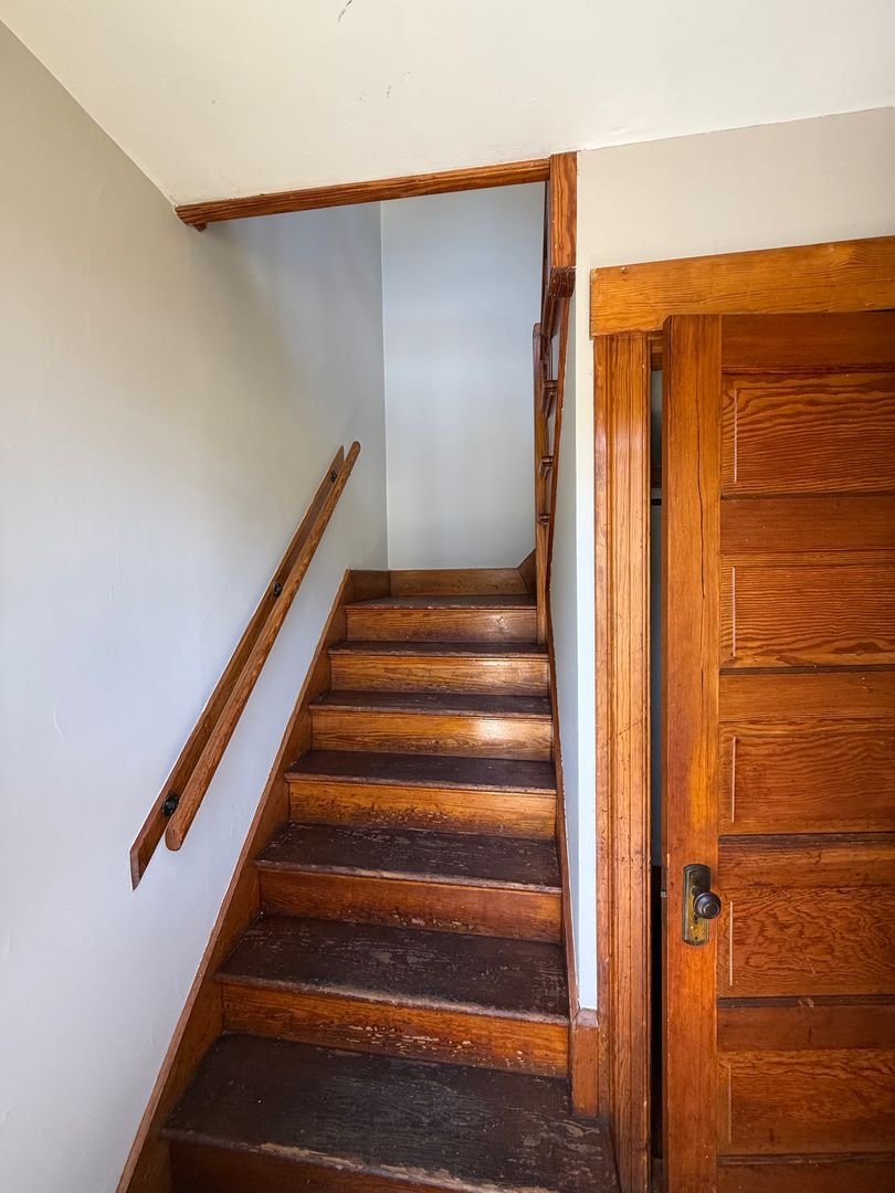 The primary bedroom includes a unique oversized closet created from a converted back staircase, adding to the already ample storage space.