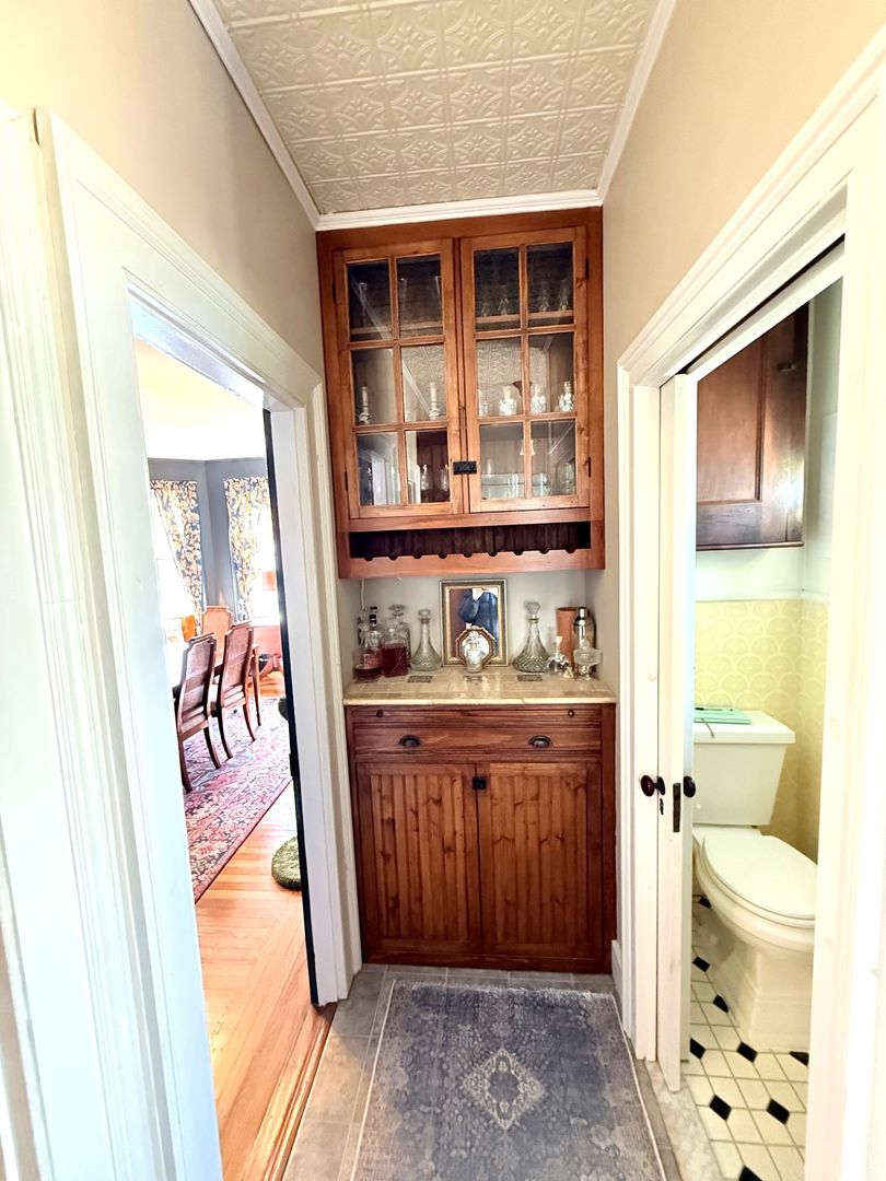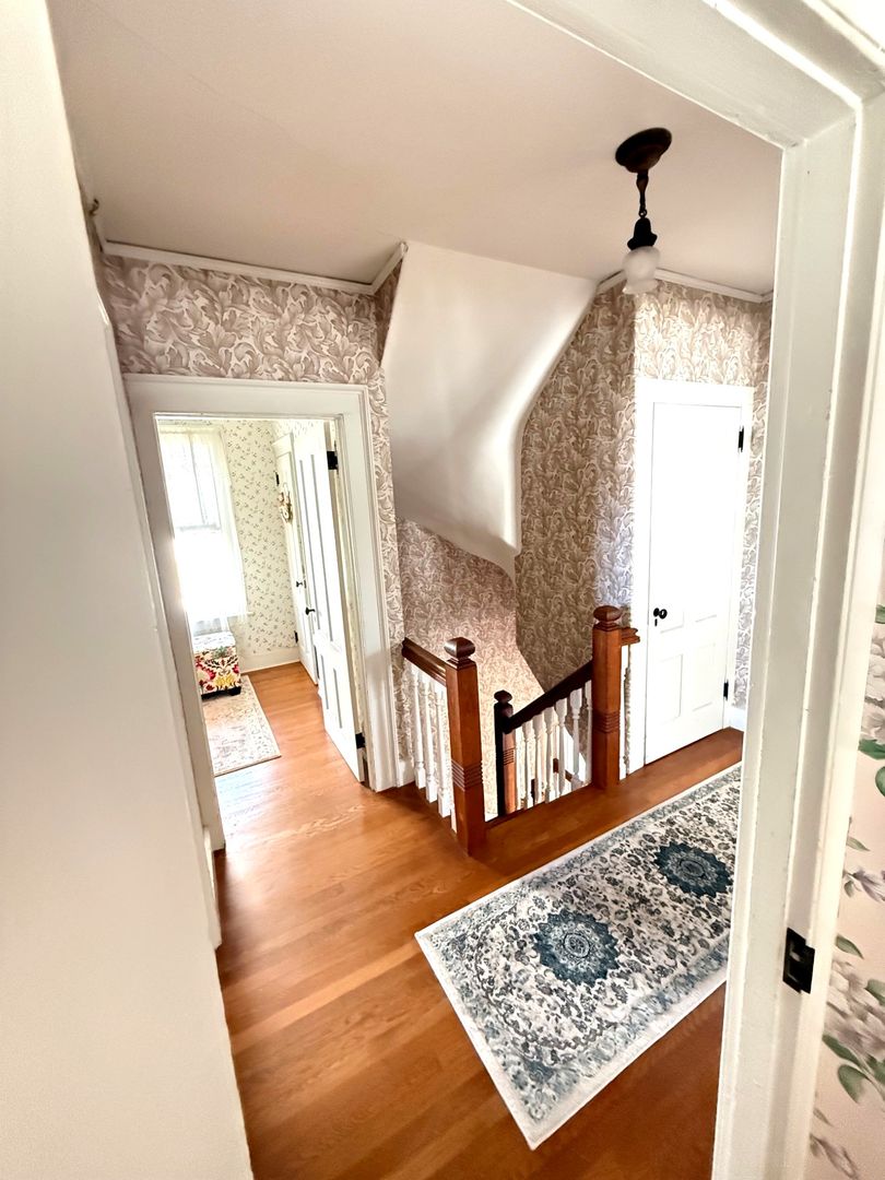 Spacious dining and living rooms provide great flow, highlighted by rich colors, decorative fireplace with the original mosaic tile, and large windows. There is designer wallpaper throughout that truly accentuates the charm and complements the impeccable wood trim. Just sitting in these rooms brings a feeling of tranquility surround by all the unique character. Upstairs offers comfortable bedrooms with plenty of natural light.