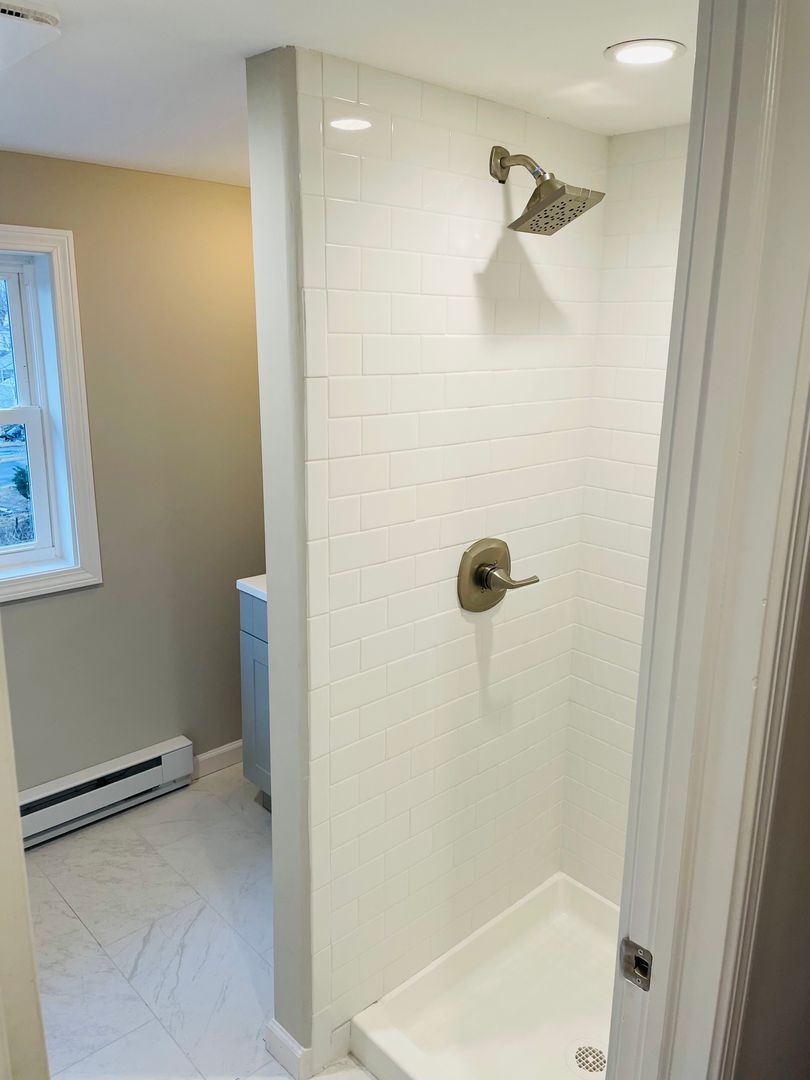 This attractive colonial has recently been updated and expanded! One of the most challenging parts of this project was building a dormer off the back of the house for a second full bath. This brand-new subway tile shower is perfectly placed between two private (upstairs) bedrooms. This full bath really completes the 2nd floor of the apartment and is one of the most unique and convenient features of this space.