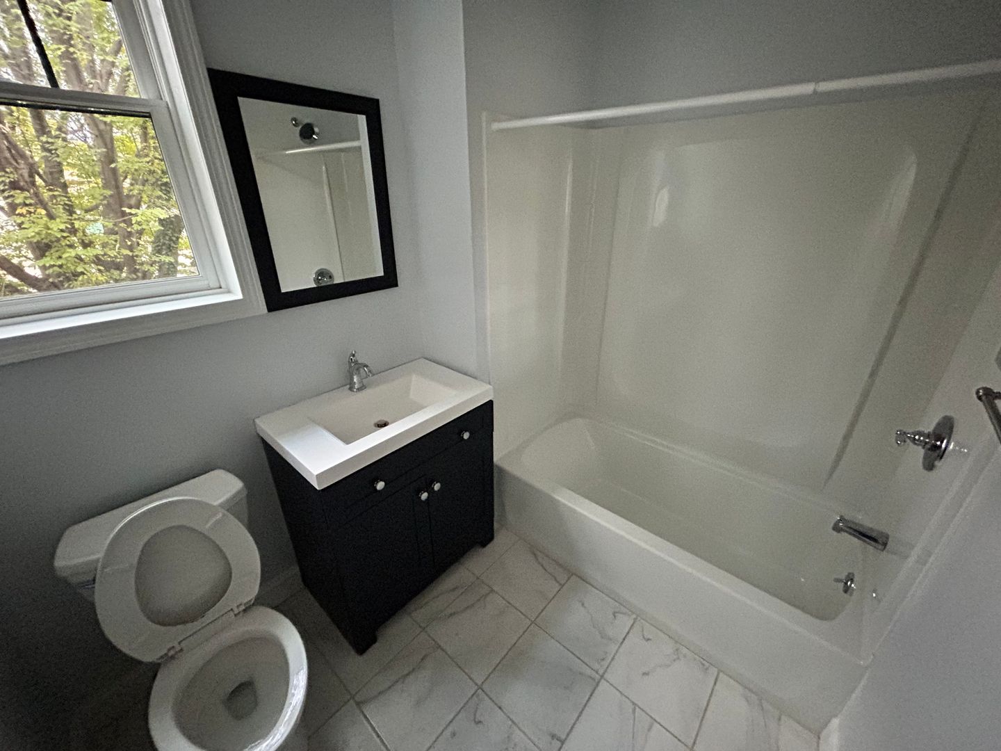 All the bathrooms are oversized and have easy to clean fiberglass shower/tub combos and chrome fixtures.